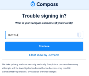 1. Select Can’t Access Your Account? (web) or Forgot Password? (mobile app), on your school’s Compass login page. This should redirect you to our Compass Login Help page.