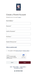 - Enter a paring code to link your account to your student in the Student Pairing Code field.
